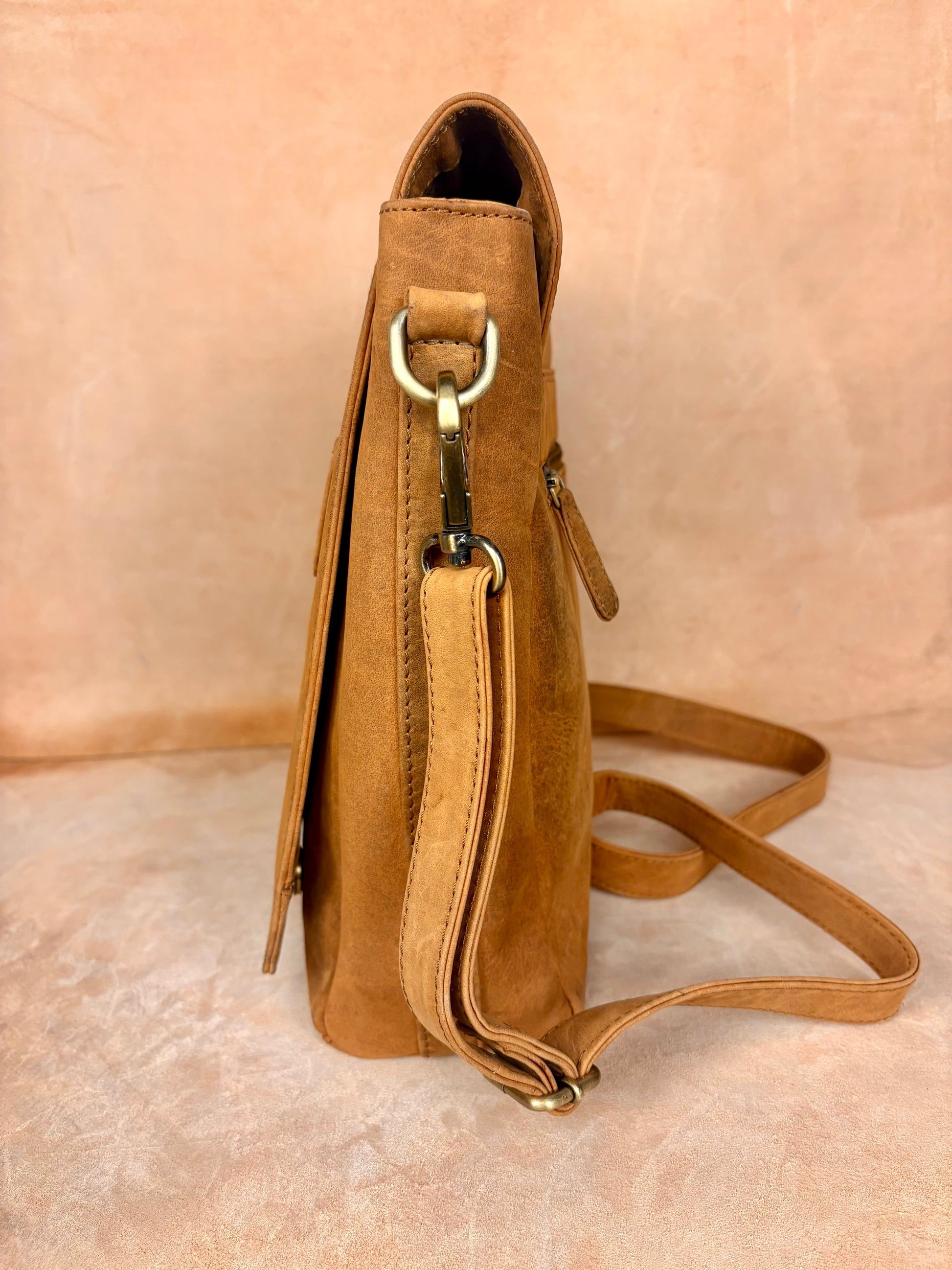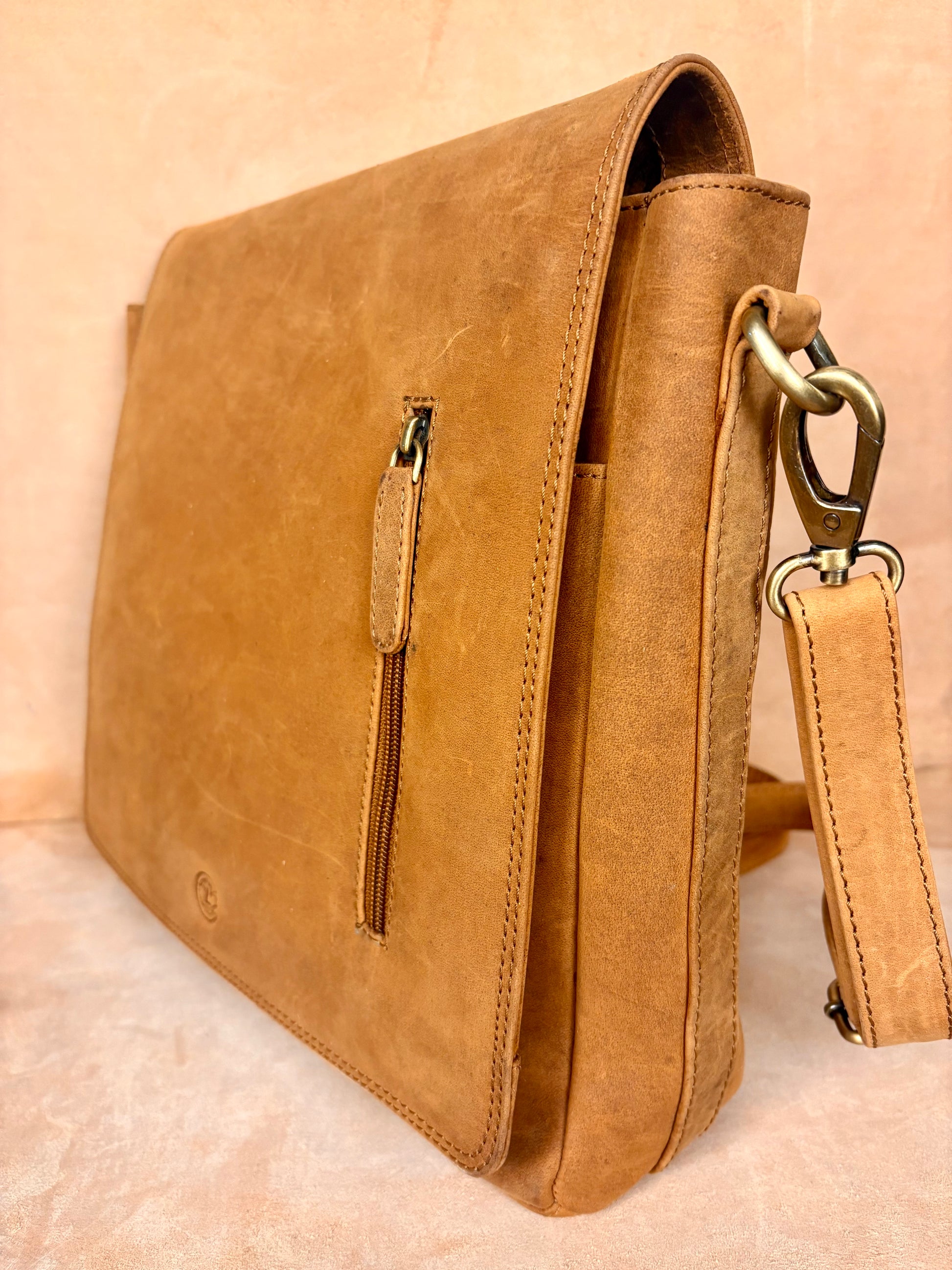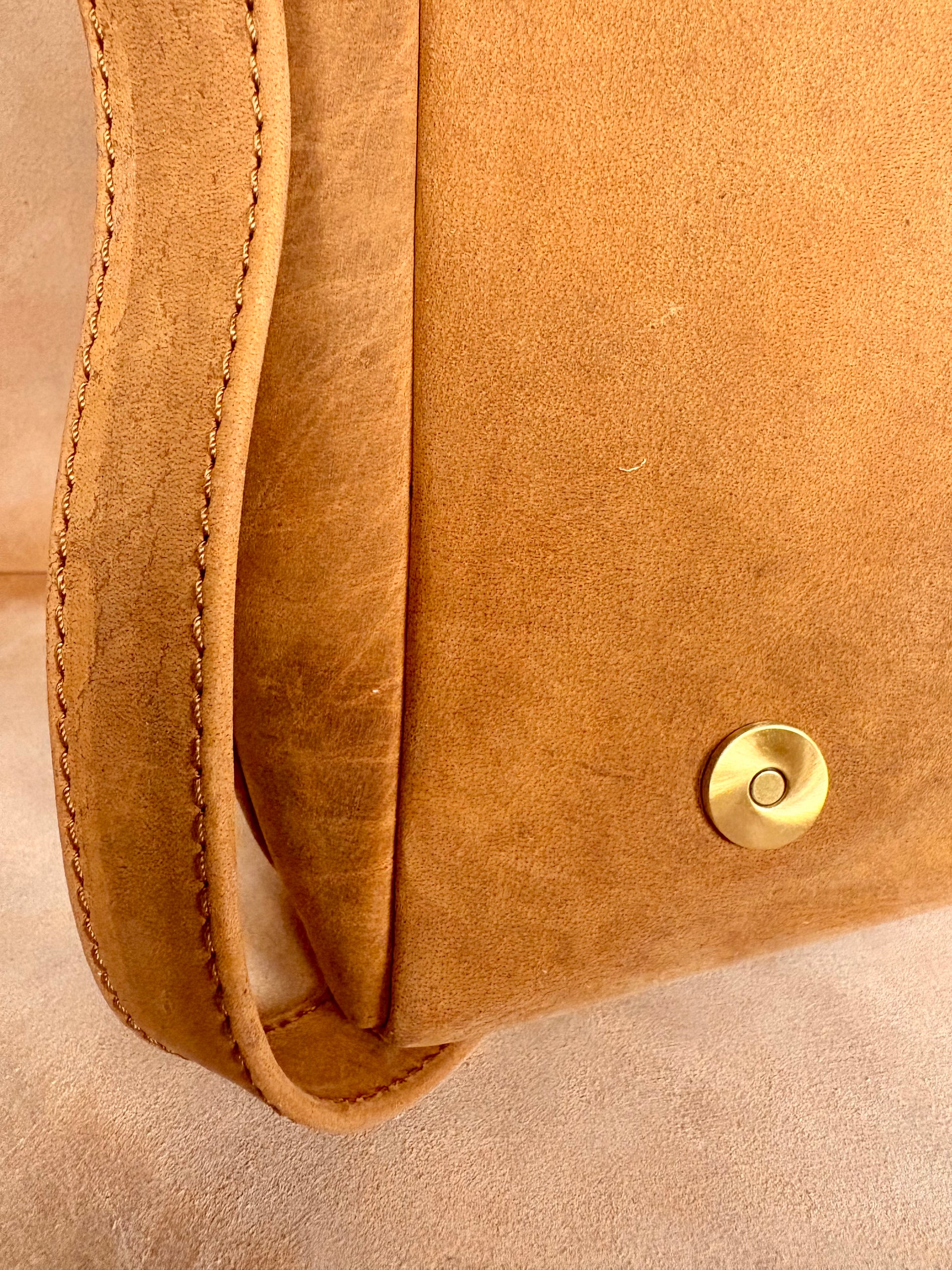 Handcrafted from durable buffalo leather, the bag develops a natural patina over time, giving every piece its own unique character.